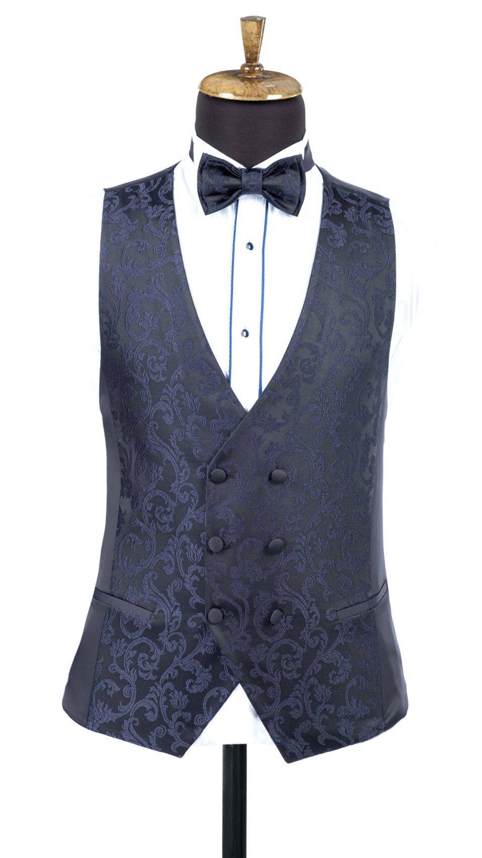 Baggi Smoking blu damascato da sposo con collo a scialle 50% di sconto con spedizione gratuita