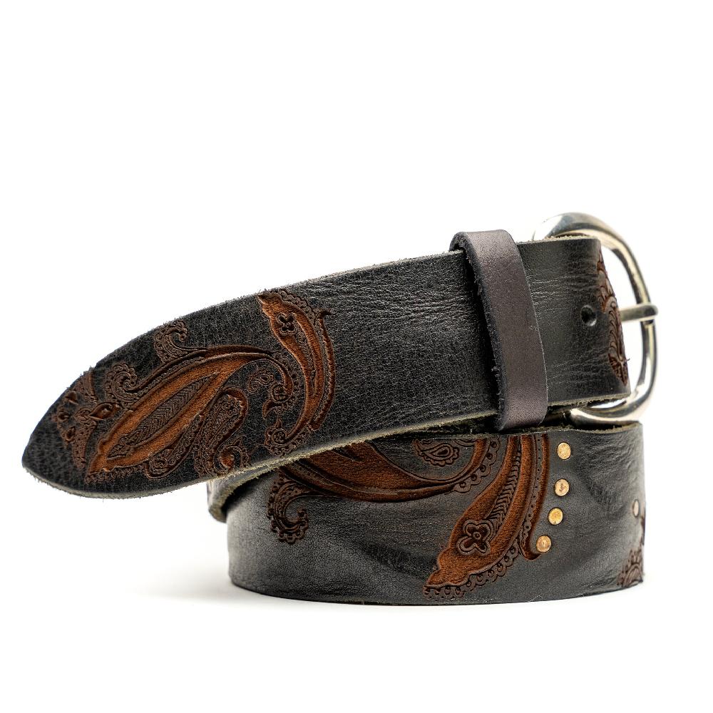 D'AMICO Cintura cuoio vintage Brown Laserato Pasley e Decorazioni Vendita Economica