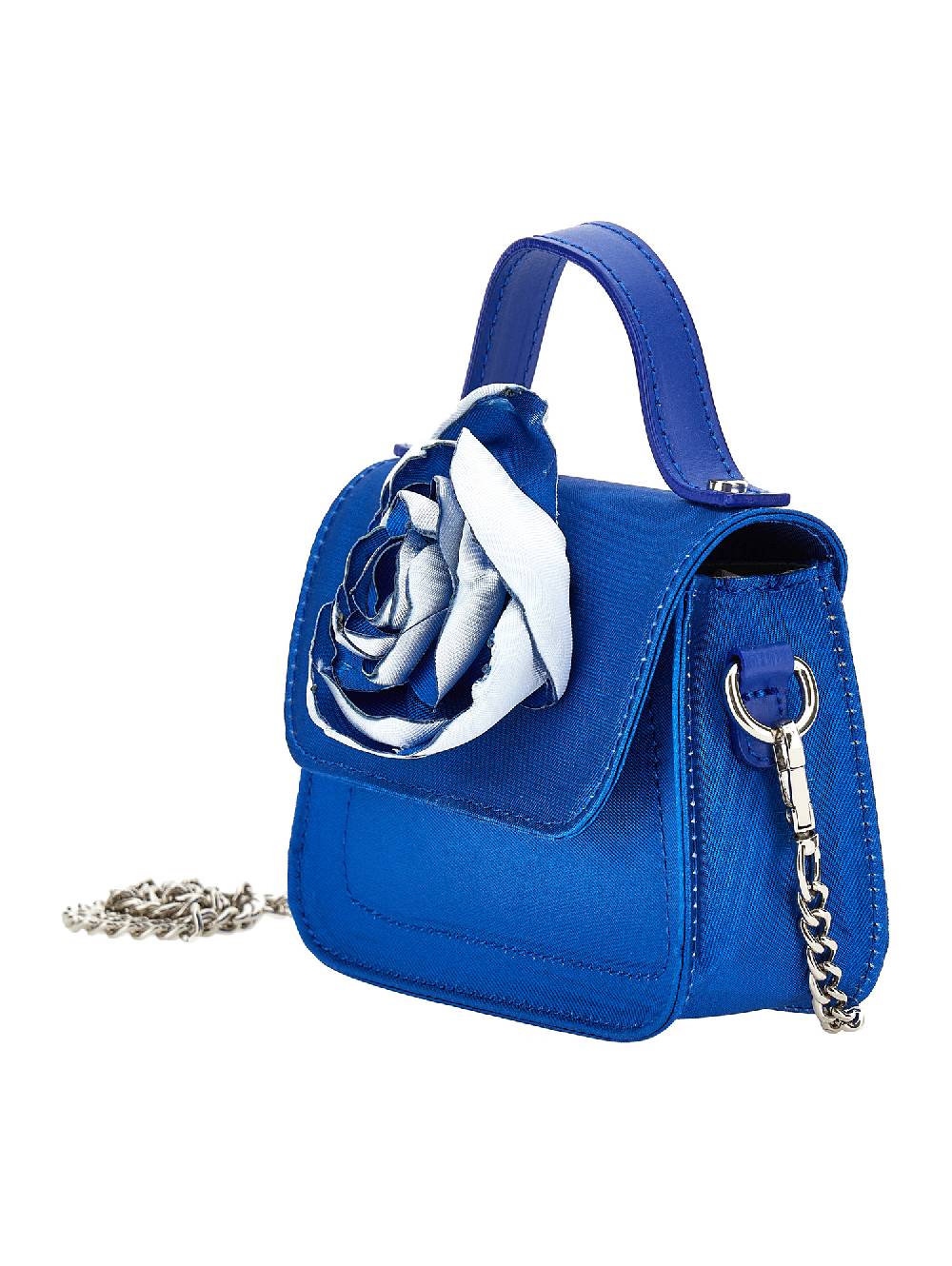Tessuto prezioso e rosa applicata per la deliziosa borsa a mano