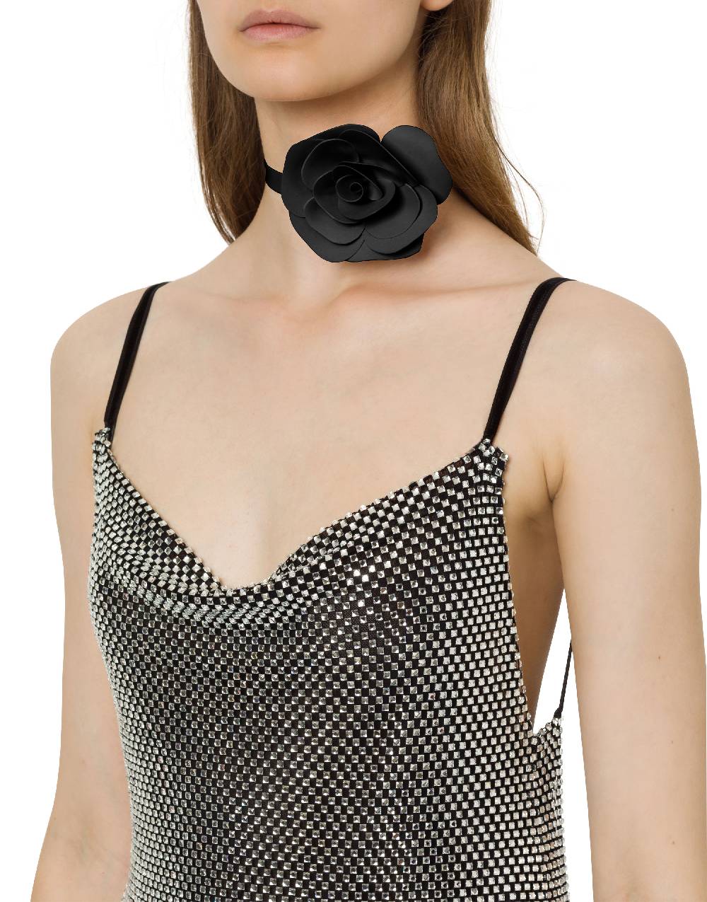 Choker con fiore in latex pensato per aggiungere un tocco new romantic ai tuoi look, in pieno stile Philosophy.
