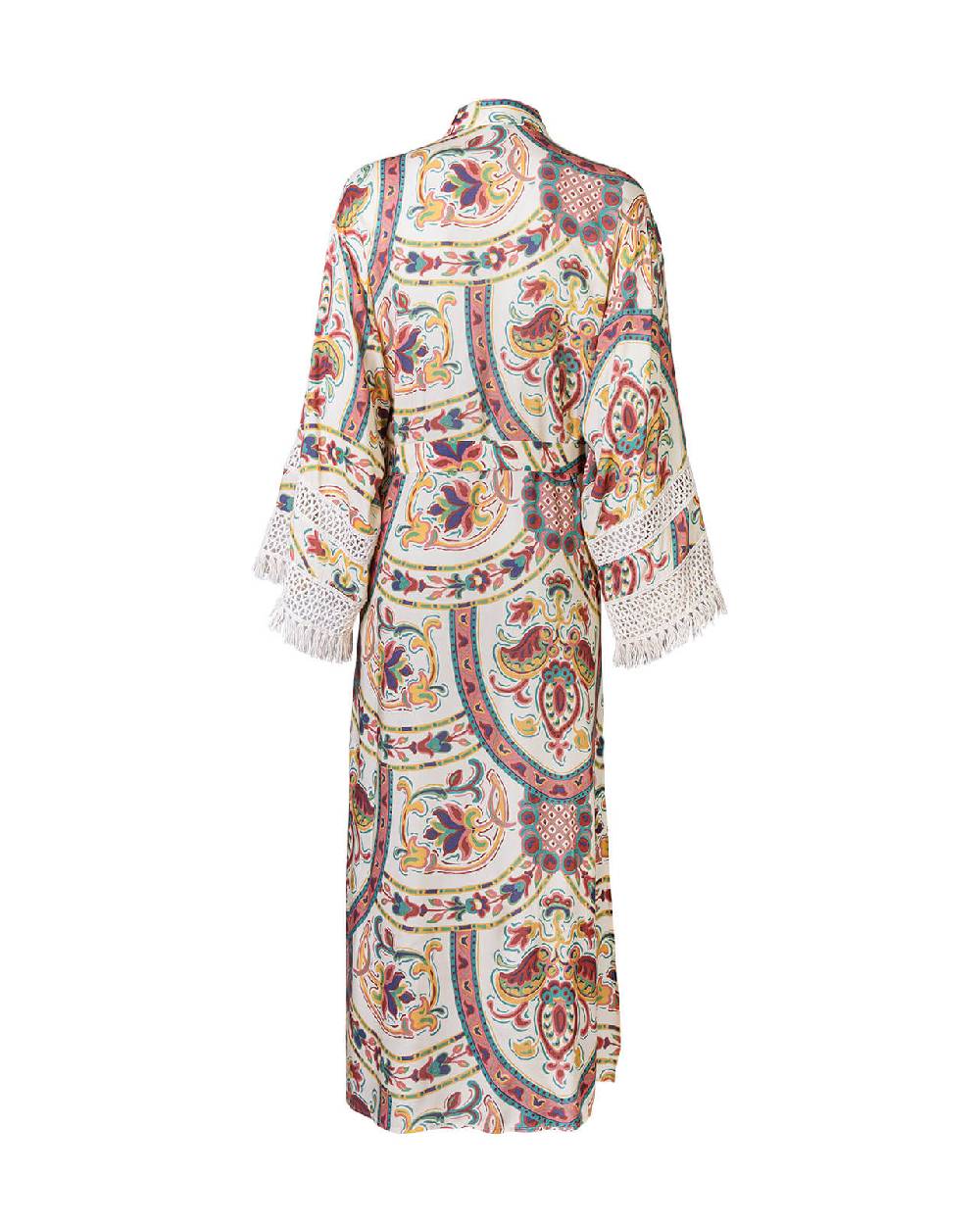 Caftano lungo stampato con passamaneria, frangia e cintura in vita.Composizione: 100%VI