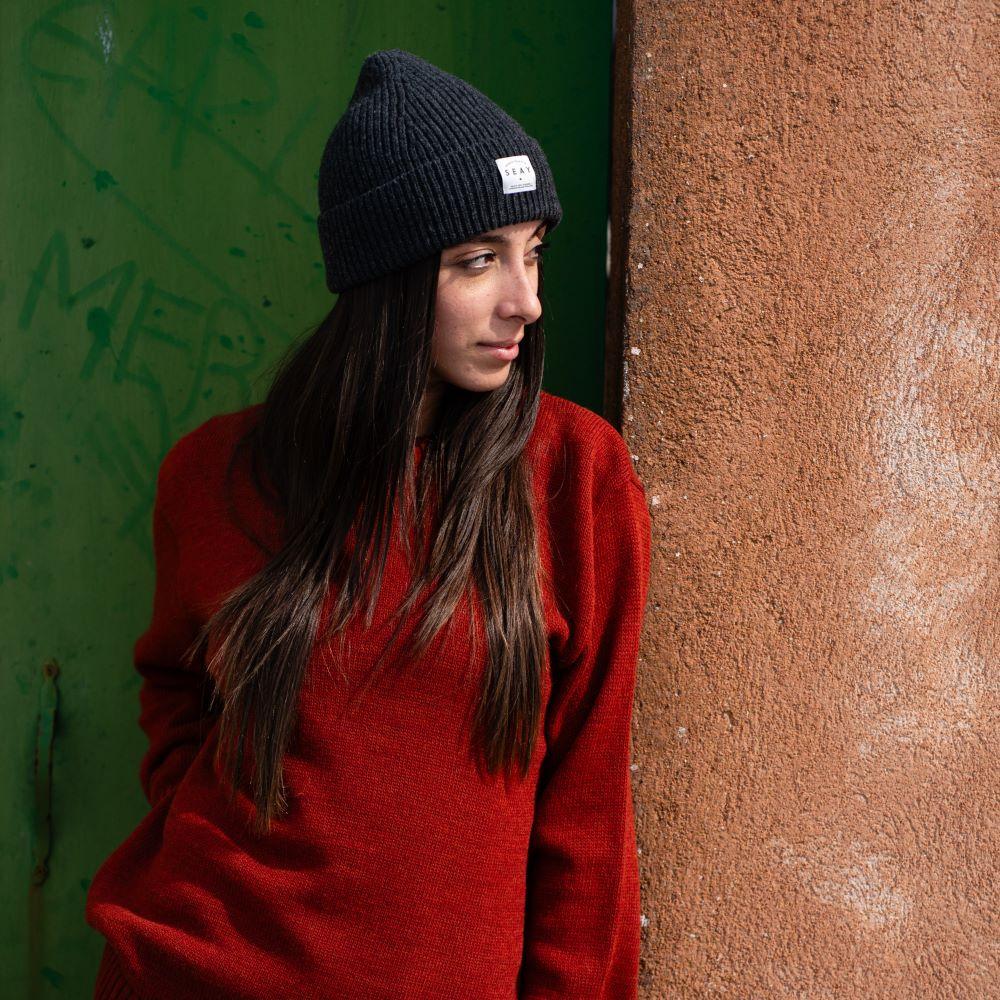 descrizione / Cuffia Nero Delavé Lana Rigenerata in 100% Lana Rigenerata. Berretto con risvolto in lana rigenerata. Etichetta logo sul centro davanti. Taglia Unica. Certificata GRS. Made in Italy