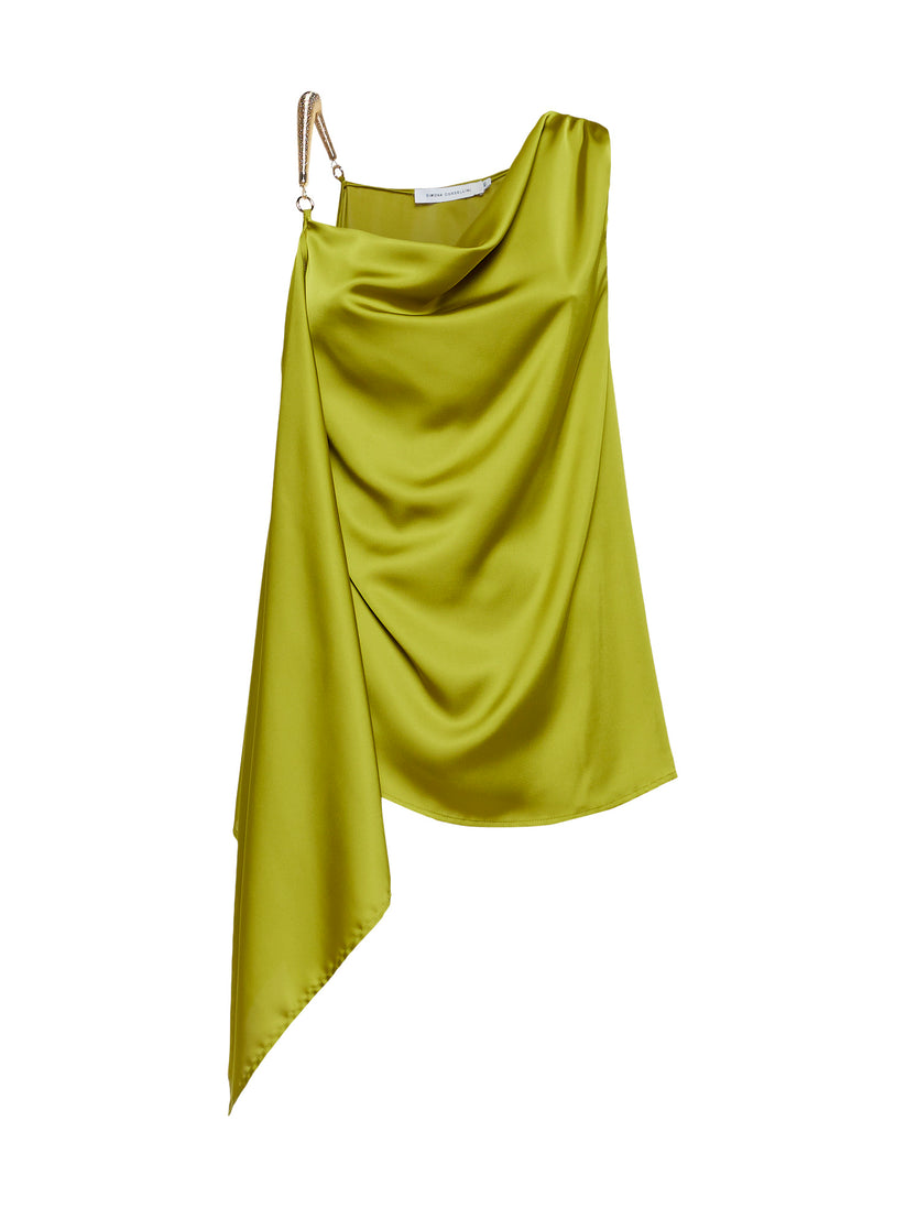 Abito lungo in raso di seta stretch con inserti in pizzo, scollo a V, sblusatura sul retro e spalline regolabili.