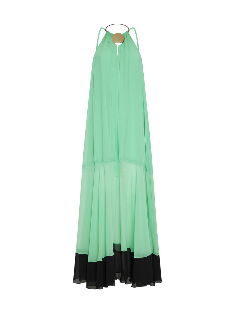 Space Simona Corsellini Abito lungo in georgette con balza al fondo a contrasto