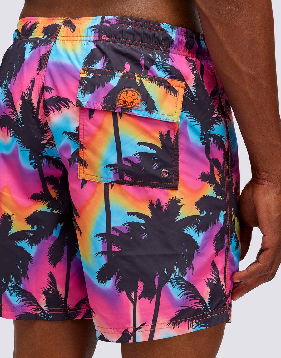 Sundek COSTUME DA BAGNO MEDIO VITA ELASTICATA STAMPA PALM IN POLY RICICLATO m665bdrt49p-3109p