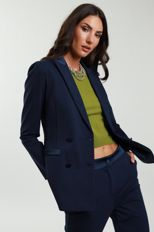 Giacca Doppiopetto Taglio Sartoriale con Inserti Lucidi. 52%co 42%po 6%ea