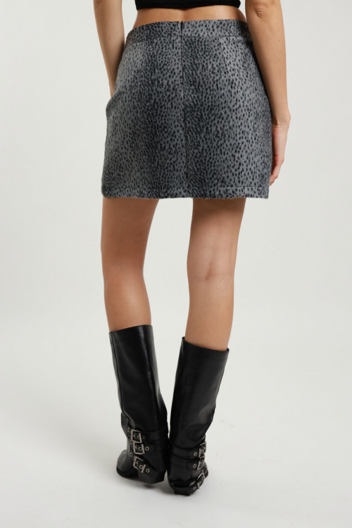 Minigonna Maculata con Chiusura a Zip Nascosta sul Retro.