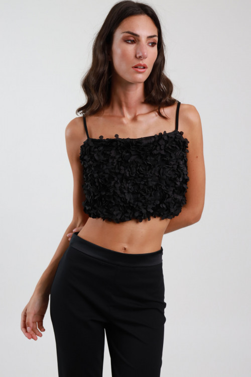 Top Spallina Stretta e Scollo Quarato Con Fiorellini Applicati Tridimensionali.