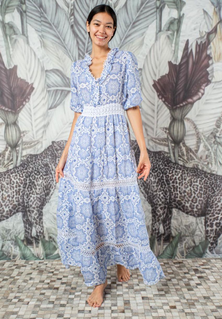 Capo unico per i vostri eventi esclusivi. Impreziosito da intarsi in macramè e balze in cotone.