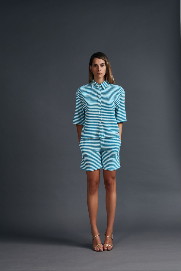 Camicia in maglia con colletto e chiusura bottoni.