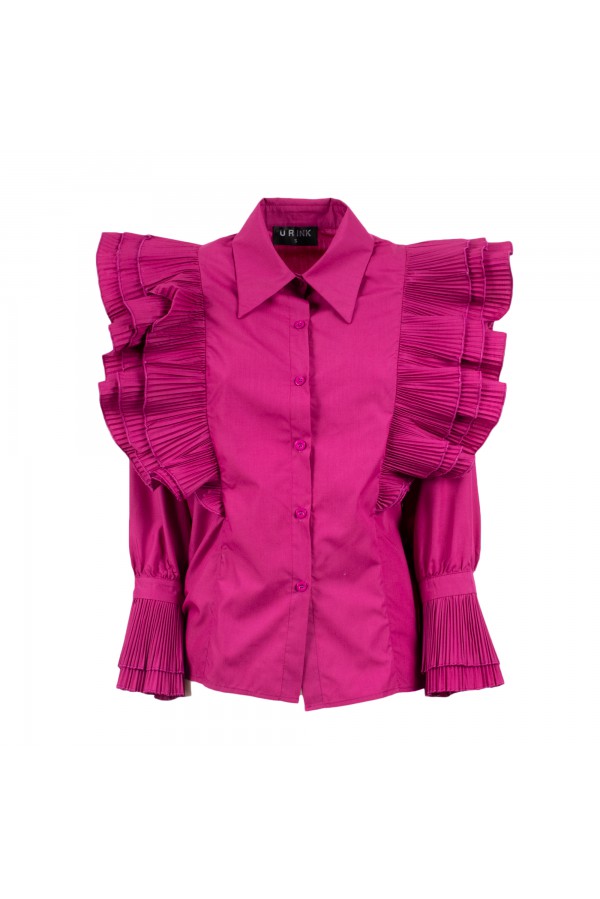 Camicia con grandi rouches sulle spalle e sui polsini.