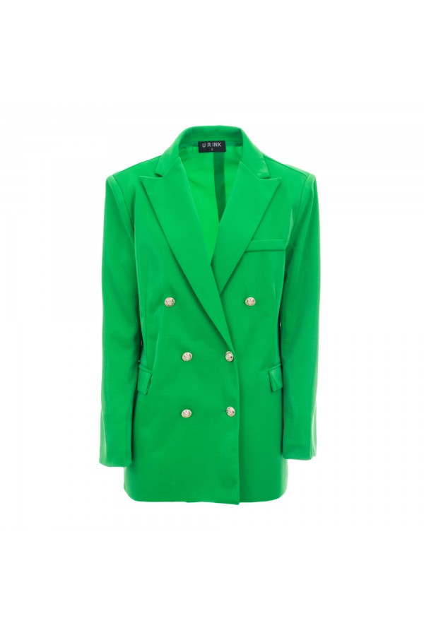 Giacca sfoderata doppiopetto con bottoni dorati. Tasca a filetto sul davanti e tasche con pattina su entrambi i lati.